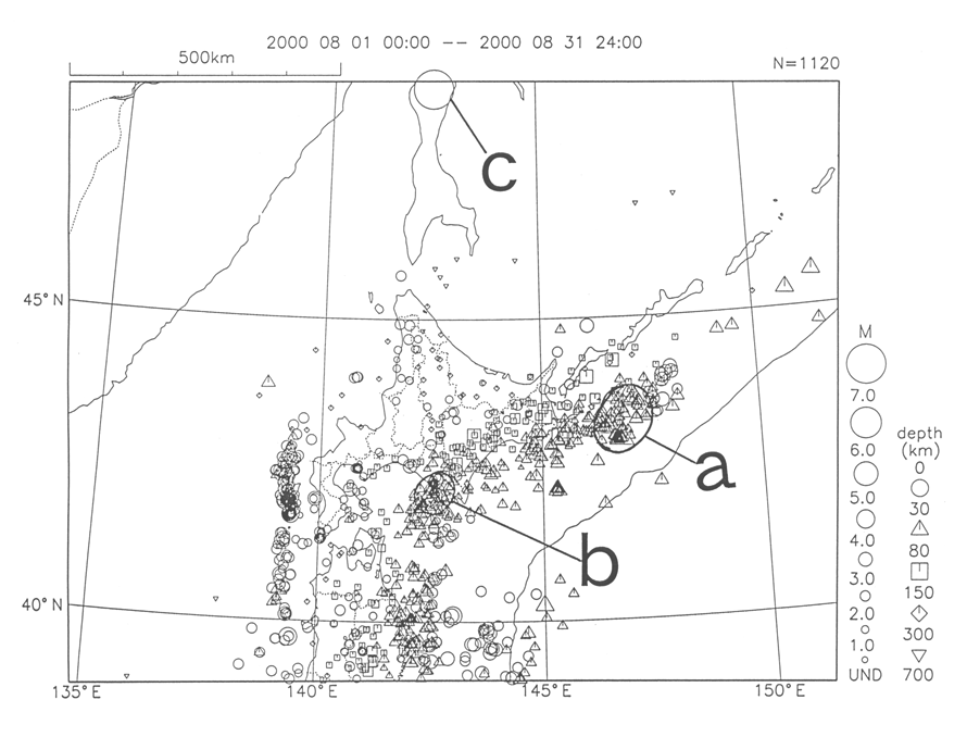 a) On August 16th and August 20th, there were M5.7 events within the zone of activity of the 1994 earthquake in the sea east of Hokkaido. The August 16th event occurred within the aftershock region of the M6.8 event that occurred on Januray 28th of this year.