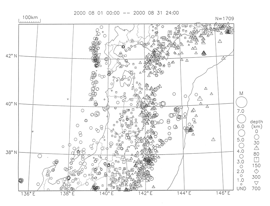 UND=Earthquakes of less than M1.0 and earthquakes whose magnitude was not recorded.
