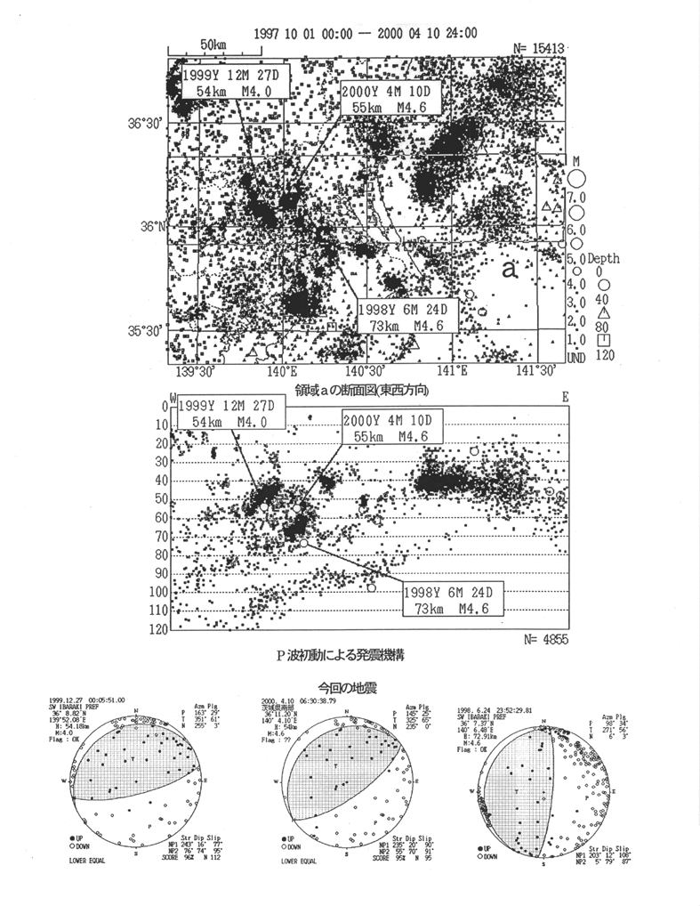 An M4.6 earthquake occurred on 10 April at a depth of 55km. Its mechanism was the reverse fault type showing a NW-SE compression axis.