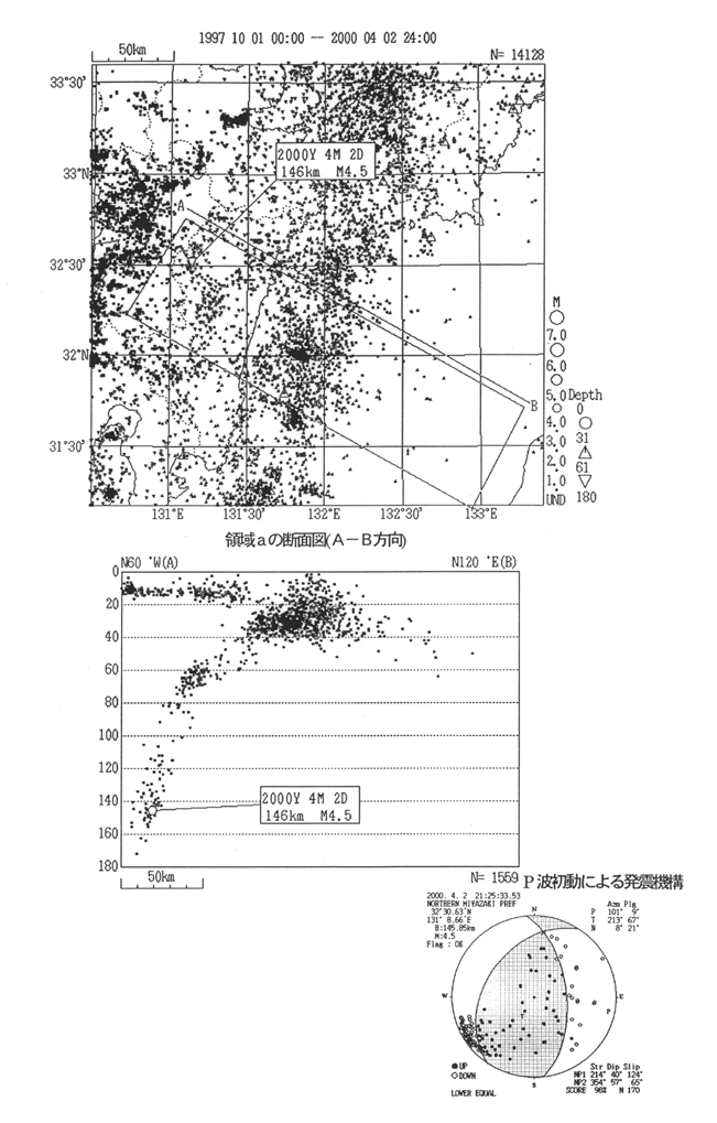 Earthquake in the foothill region of northern Miyazaki Pref. (2000/4/2 D=146km, M4.5)