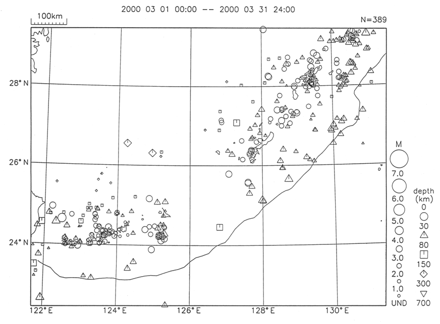 UND=Earthquakes of less than M1.0 and earthquakes whose magnitude was not recorded.