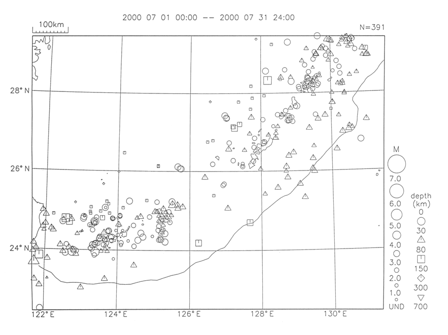 UND=Earthquakes of less than M1.0 and earthquakes whose magnitude was not recorded.