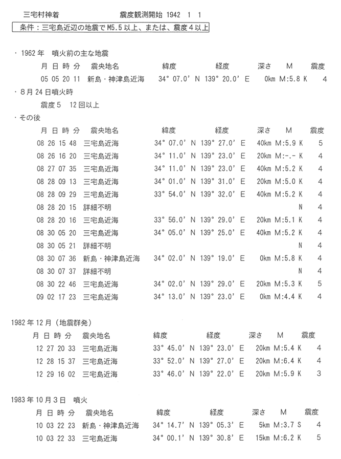 三宅島近辺の地震(M5.5以上または震度4以上)