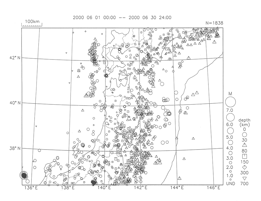UND=Earthquakes of less than M1.0 and earthquakes whose magnitude was not recorded.