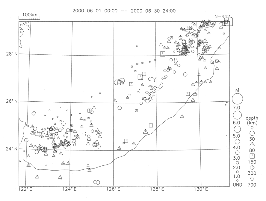 UND=Earthquakes of less than M1.0 and earthquakes whose magnitude was not recorded.