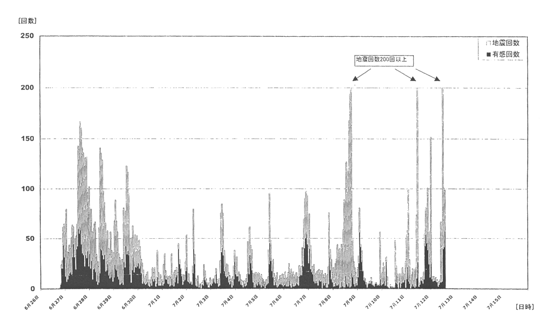 The incidence of earthquakes is as recorded by the Miyakejima earthquake monitoring station.