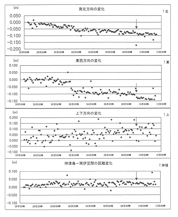 Using the south Izu station as a standard, the Kozushima tidal gauge station was employed as a GPS fixed station.