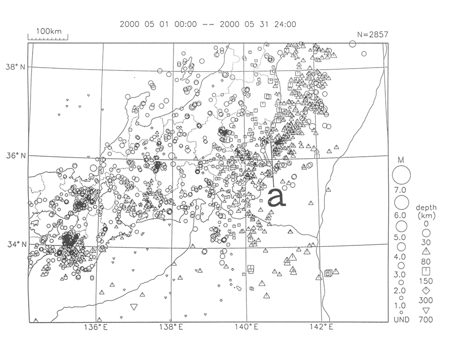 Also, outside this area, on 10 June, in the sea near Torishima island [off the Tokaido coast], there was a deep M6.5 event (at a depth of 530 km).