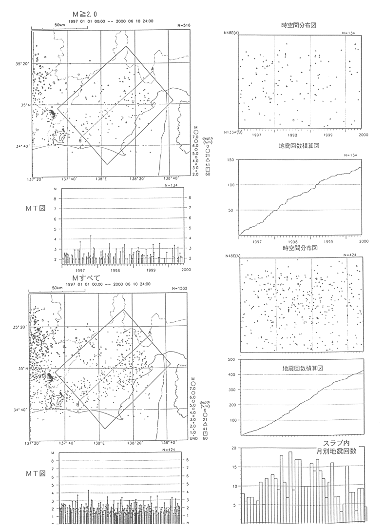 Seismic activity near the locked region (in the Philippine Sea slab in the period from January 1, 1997 to June 10, 2000)