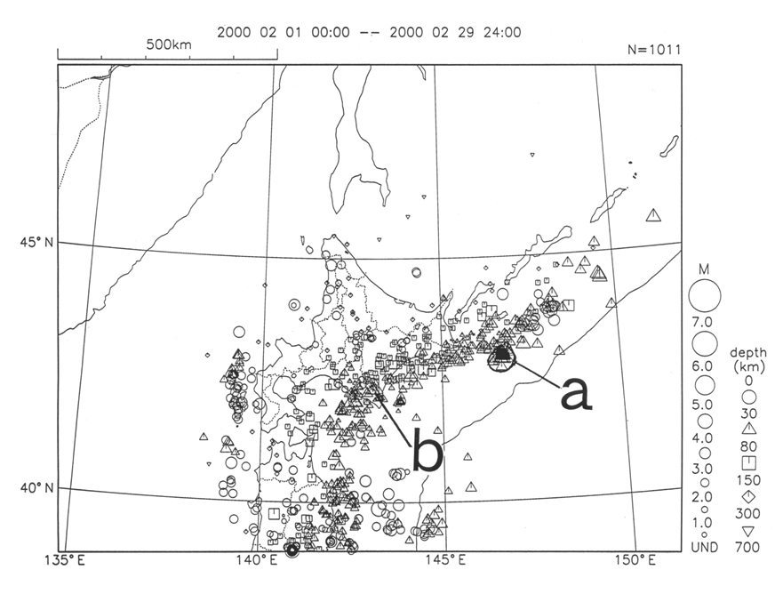 a) The M4.3 earthquake east offshore of Hokkaido [Southeast Offshore of Nemuro Peninsula] was in the area of activity of the event on 28 January (M6.8).