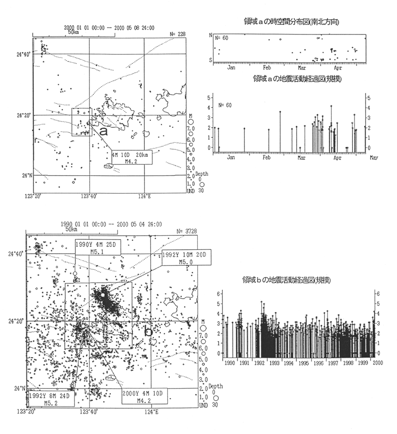 On April 10, there was a shallow M4.2 event at a depth of 20 km. The same area was the site of swarm activity in 1992, and an M5.2 event in August 1992.