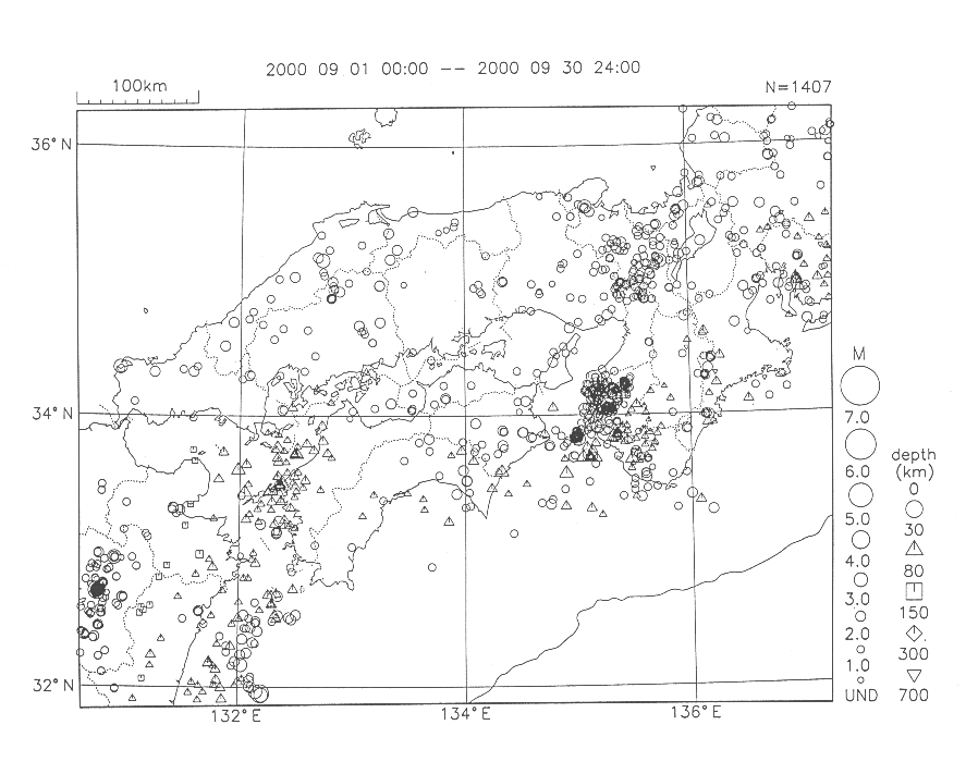 Additionally, although it occurred outside of the period under discussion, on October 6th at 1:30 p.m.. there was an M7.3 event [the 2000 Western Tottori Earthquake] (maximum seismic intensity 6 upper) in western Tottori Prefecture. Also, on October 8th at 8:51 p.m., there was an M5.0 aftershock (maximum seismic intensity 5 lower) on the same area.