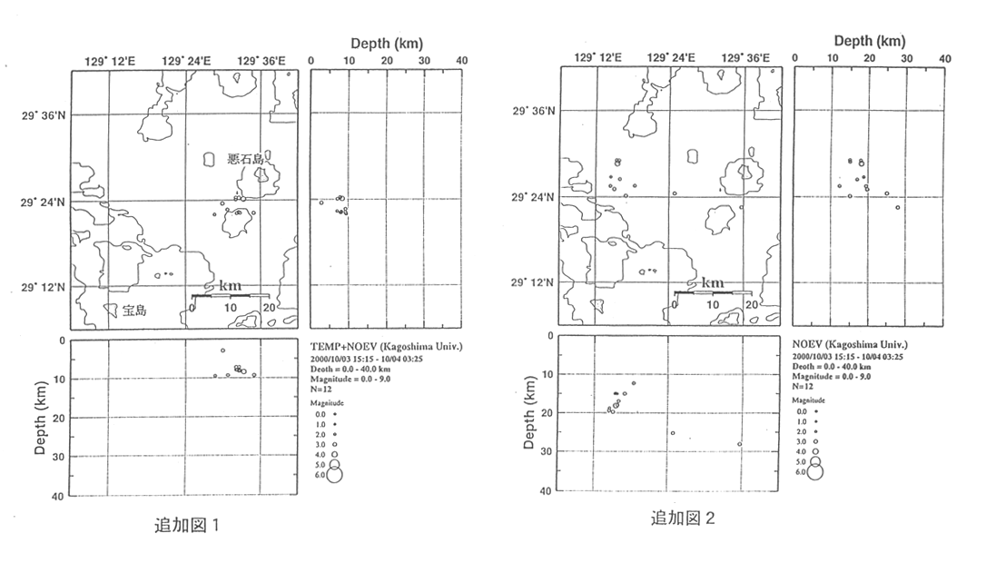 Additional chart 1: Epicenter distribution determined by data from existing stations and provisional (Akusekijima, Takarajima) observation stations