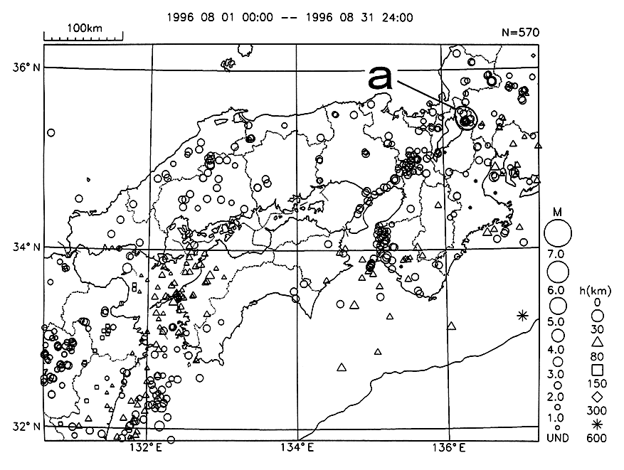 a)7/30にM4.1の地震が発生した滋賀県地方(琵琶湖北東岸)では8月にM3を越える地震が2個発生したが、主な活動は上旬にほぼ収まっている。