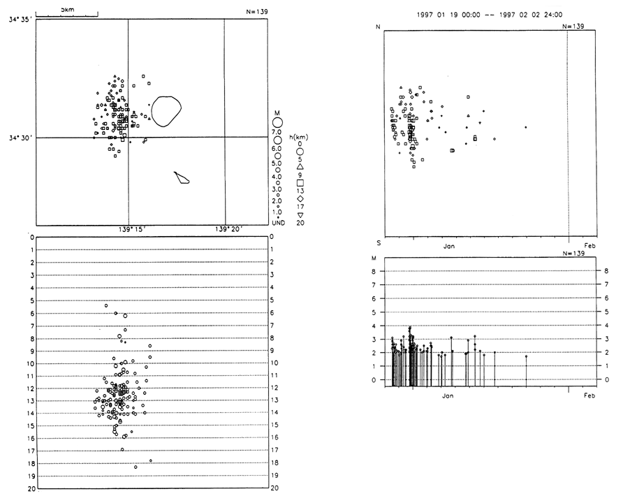 新島・神津島近海(利島西方)の地震活動(1997/1/19−1997/2/2)