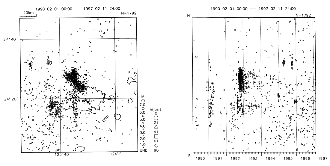 西表島付近の最近の地震活動(1990年2月〜1997年2月)