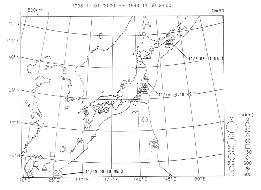 There occurred earthquakes of M5.1 to the east offshore of Hokkaido, M5.1 offshore of Miyagi Pref., and M6.3 to the south offshore of Ishigakijima.