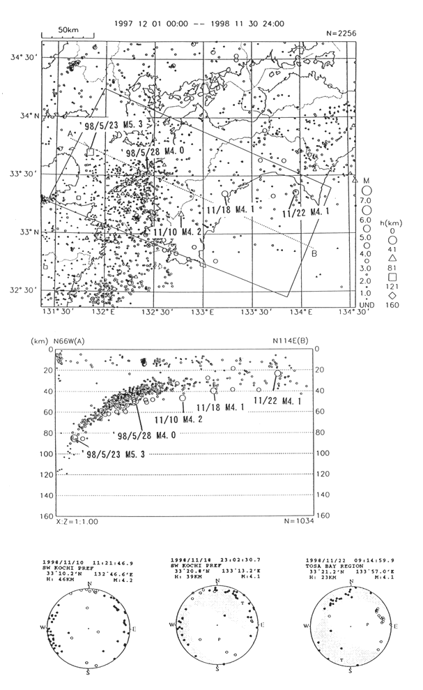 Seismic activity in the vicinity of Kochi Pref. (1 Dec 1997 - 30 Nov 1998)