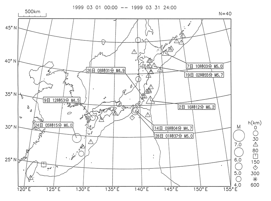 Also, though it is outside our time frame, an M7.2 earthquake occurred on 8 April in the vicinity of Vladivostok at a depth of about 600km.