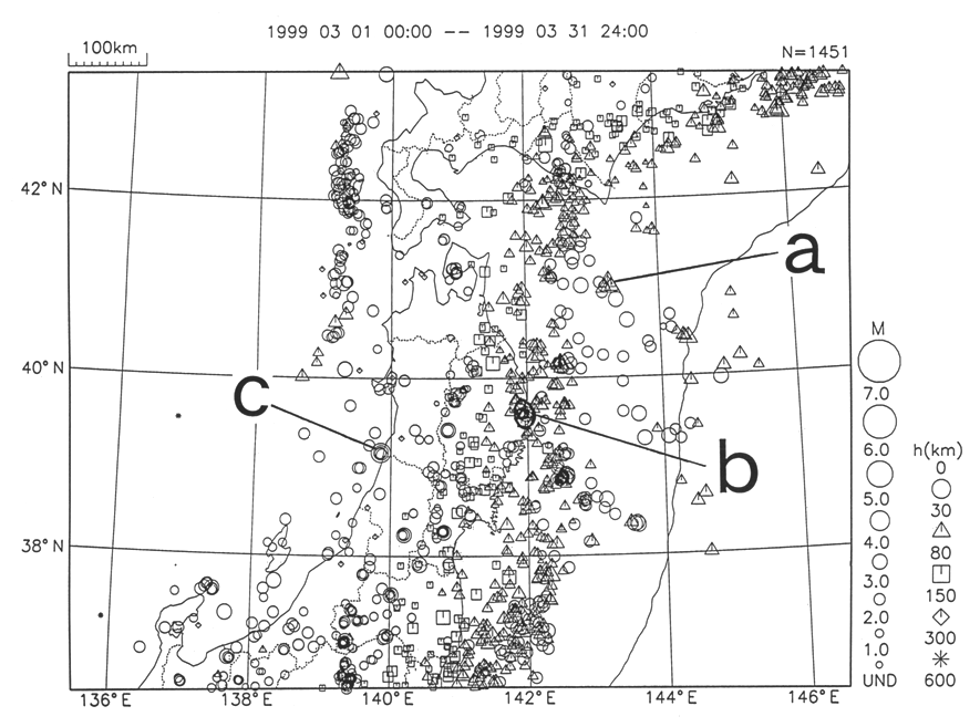a) An M5.7 earthquake occurred on 19 March off the eastern coast of Aomori Pref.