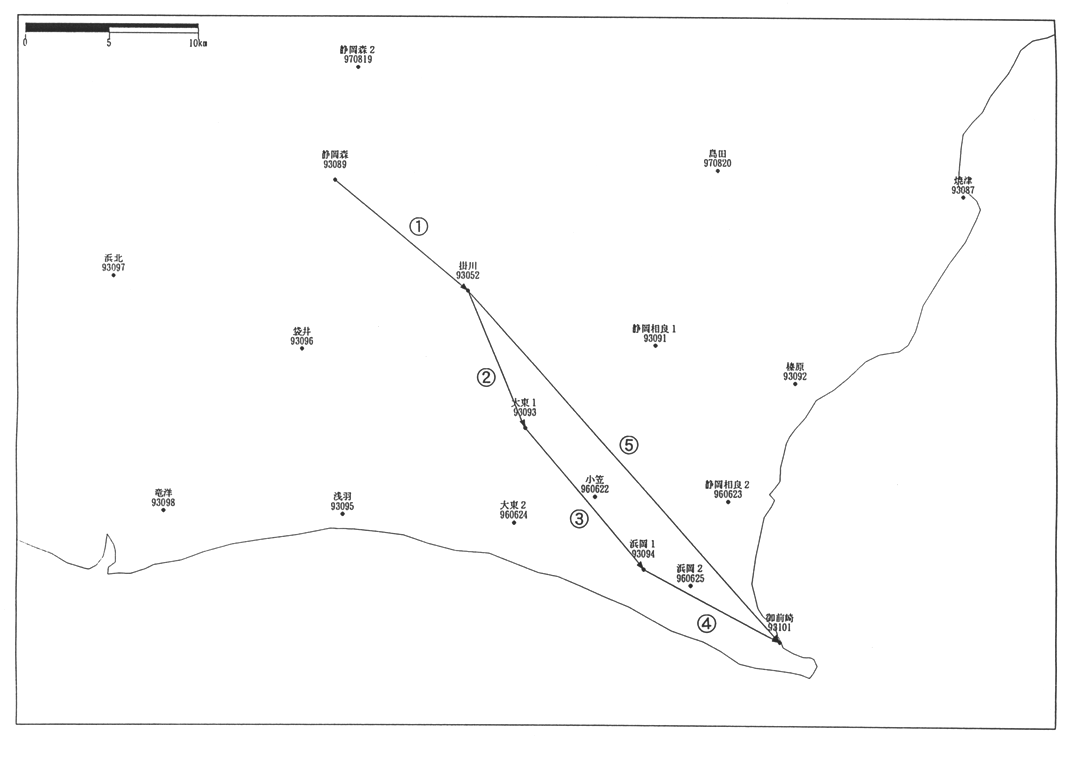 GPS continuous observation base-line chart (Vicinity of Kakegawa and Omaezaki)