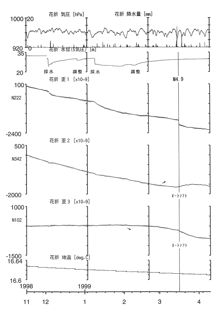 Hanaore Observation Well (Otsu) (hourly value) (16 Nov. 1998, 00h00m - 10 Apr. 1999, 00h00m)