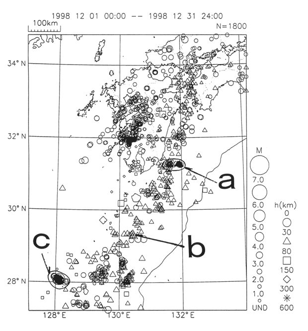c) An M5.1 earthquake occurred on 20 December in the coastal waters of Amami Oshima.