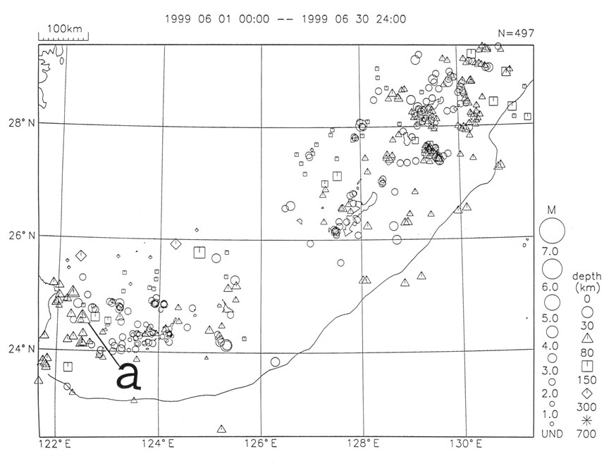 a) There was an M5.1 earthquake on 4 June in the vicinity of Taiwan.