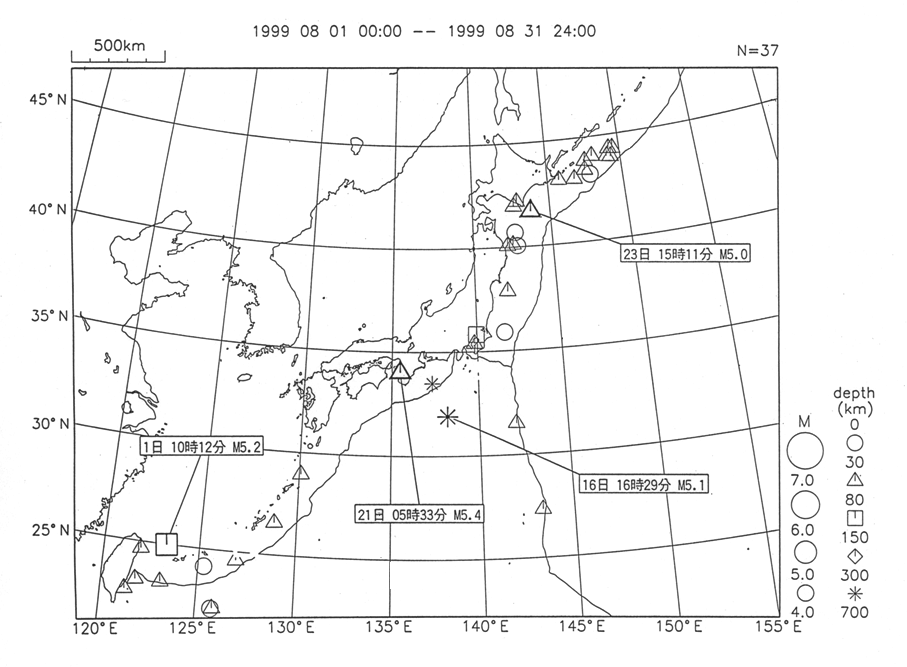 An M5.0 earthquake occurred offshore of Tokachi. A 5.1 deep-focus earthquake occurred offshore of Tokachi.An M5.4 earthquake occurred in northern Wakayama Pref., and an M5.2 earthquake occurred in the sea near Yonaguni Island.