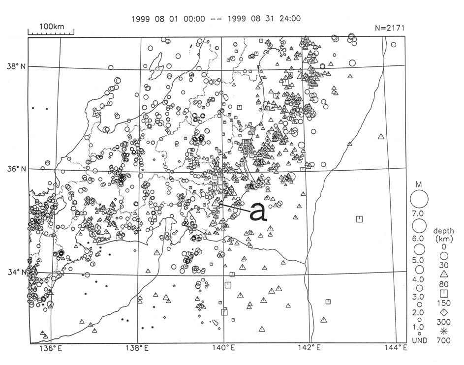 a) An M4.0 earthquake occurred on 11 August in Tokyo Bay (maximum intensity: 3).