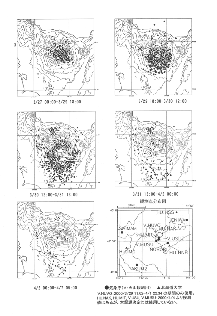 Seismic activity in the vicinity of Mt. Usuzan (epicenter distribution chart, by time period (recalculated hypocenter))