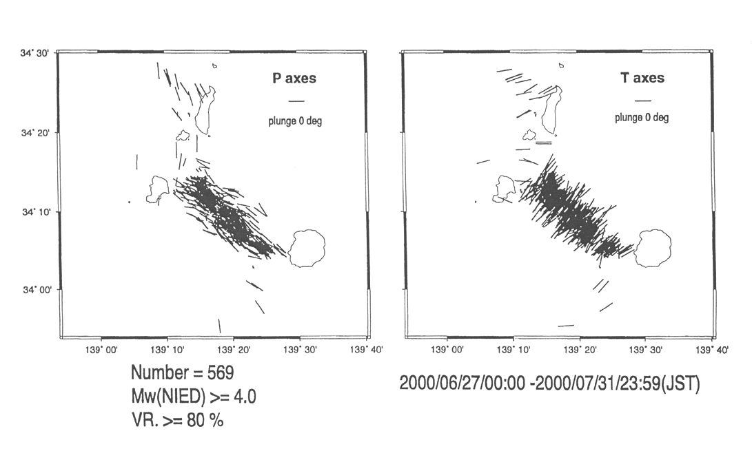 新島・神津島近海および三宅島近海の地震の応力軸の方向