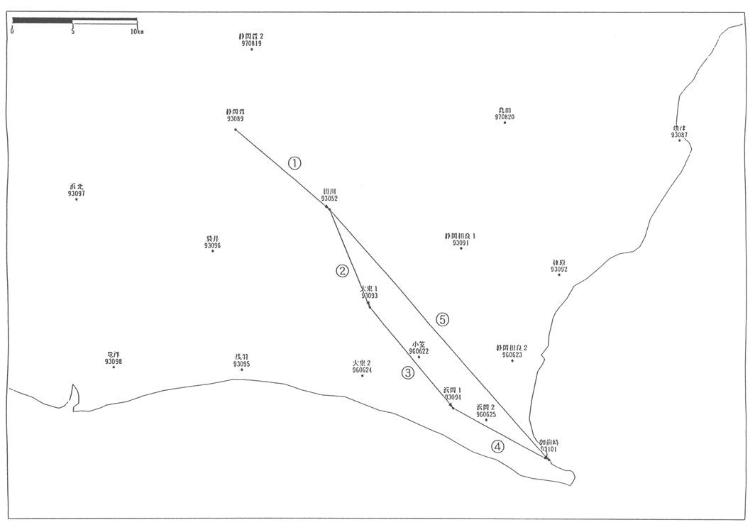 GPS continuous observation base-line chart (the vicinity of Kakegawa and Omaezaki)