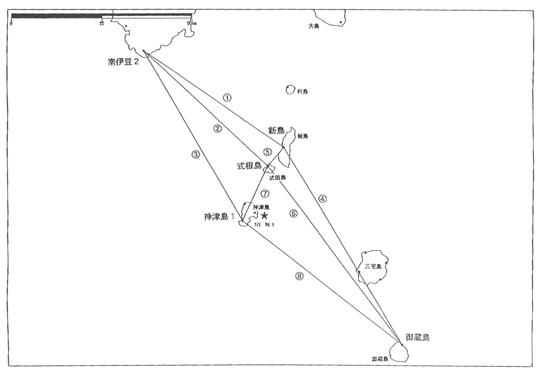 神津島周辺GPS連続観測基線図