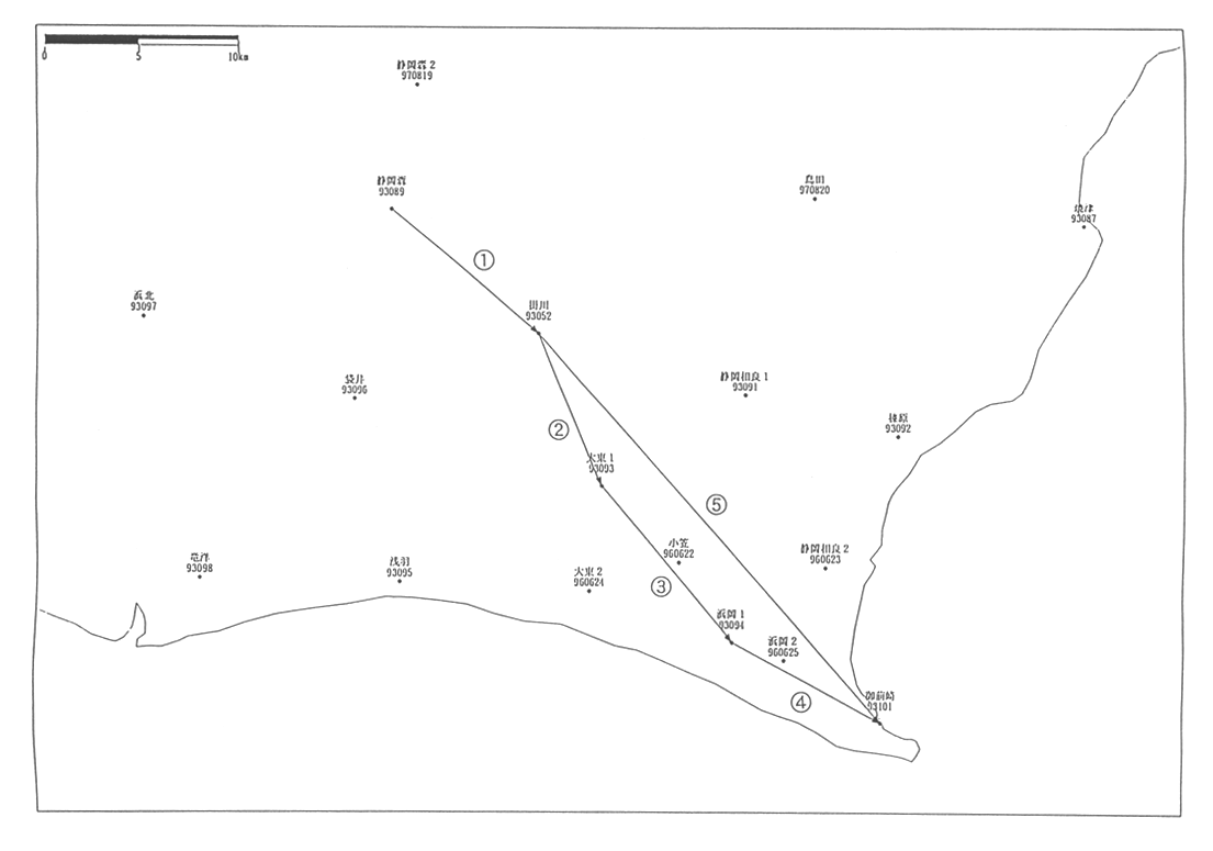 No notable variation was observed in the base line of the Kakegawa, Omaezaki vicinity.