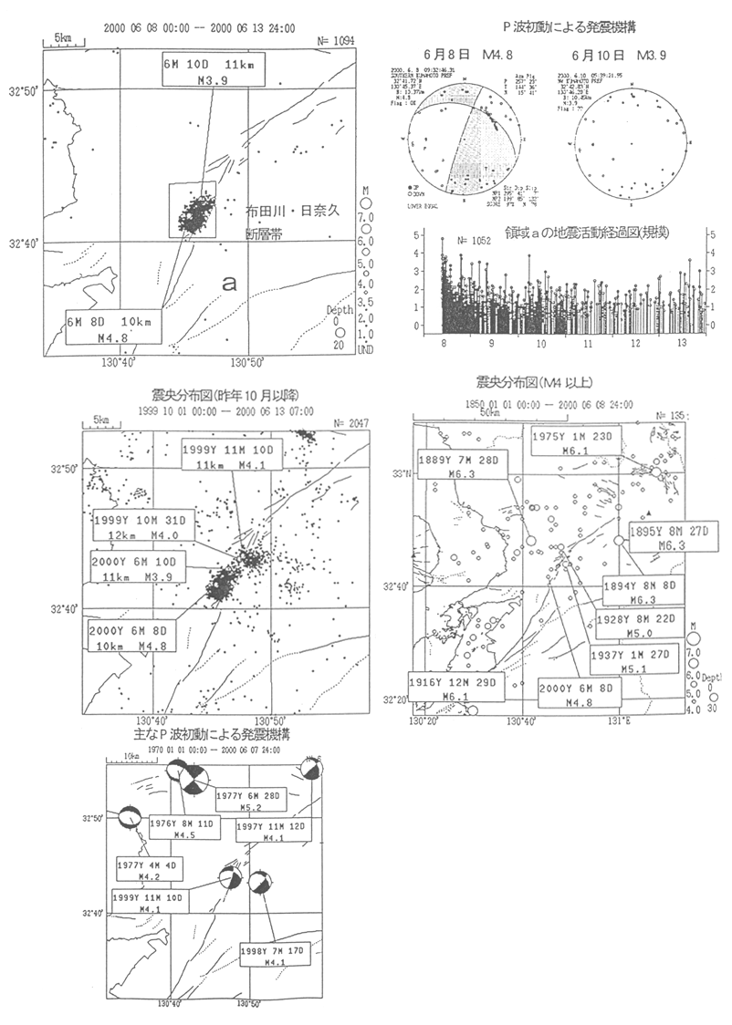 On 8 June, there was an M4.8 event at a depth of 10 km, followed by several aftershocks, and on 10 June there was an M3.9 event at a depth of 11 km at the northeastern tip of the aftershock region. From October to November of last year, there was seismic activity to the northeast of this event, including events of M4.1 and M4.0. The focal mechanism was a strike-slip fault type, on a northwest-southeast tension axis.