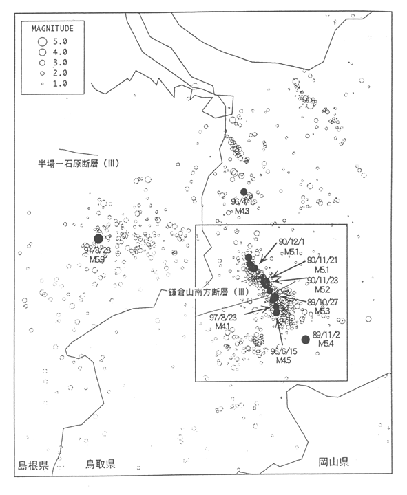 Seismic activity near the Shimane-Tottori border in 1997 and before