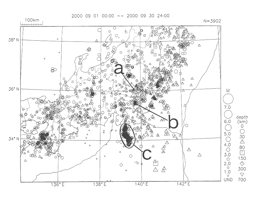 c)The seismic activity in the area from Niijima-Kozushima to Miyakejima has quieted, but on September 11th there was an M5.3 event (maximum seismic intensity 5 lower) about 5 km west of Toshima.