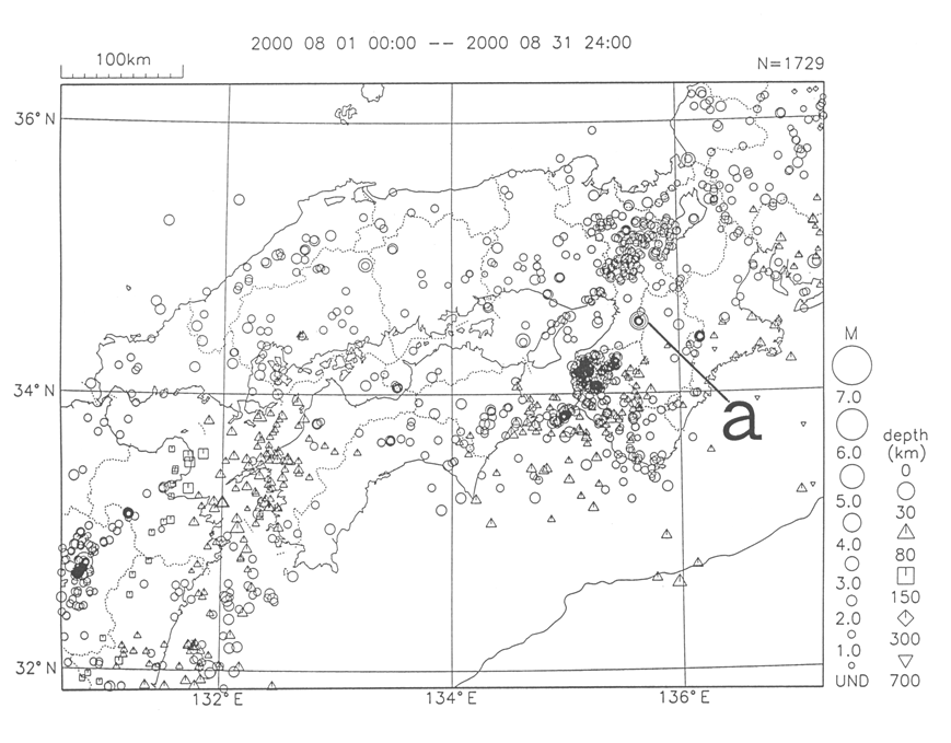 a) On August 27th, there was an M4.1 event (maximum seismic intensity 4) near the border of Osaka and Nara Prefecture [Nara Prefecture region].