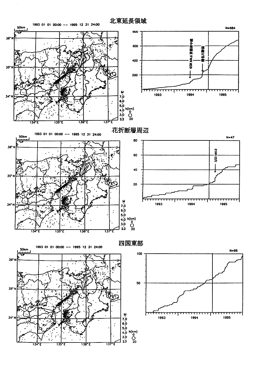 本震以後急激に活発化した。その後は徐々に活動レベルは低下しつつある。なお本震前、猪名川群発などで活動レベルが高かった。