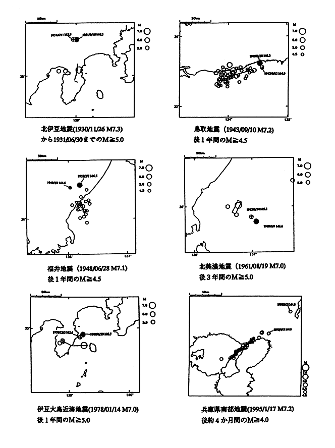 内陸地震(M≧7.0)の続発地震とそれに先行する地震(1926〜)