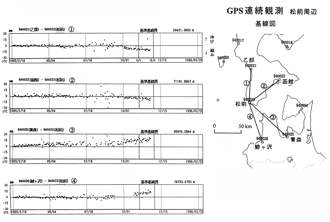 10月上旬頃から、松前周辺の基線長に変化が認められる。
