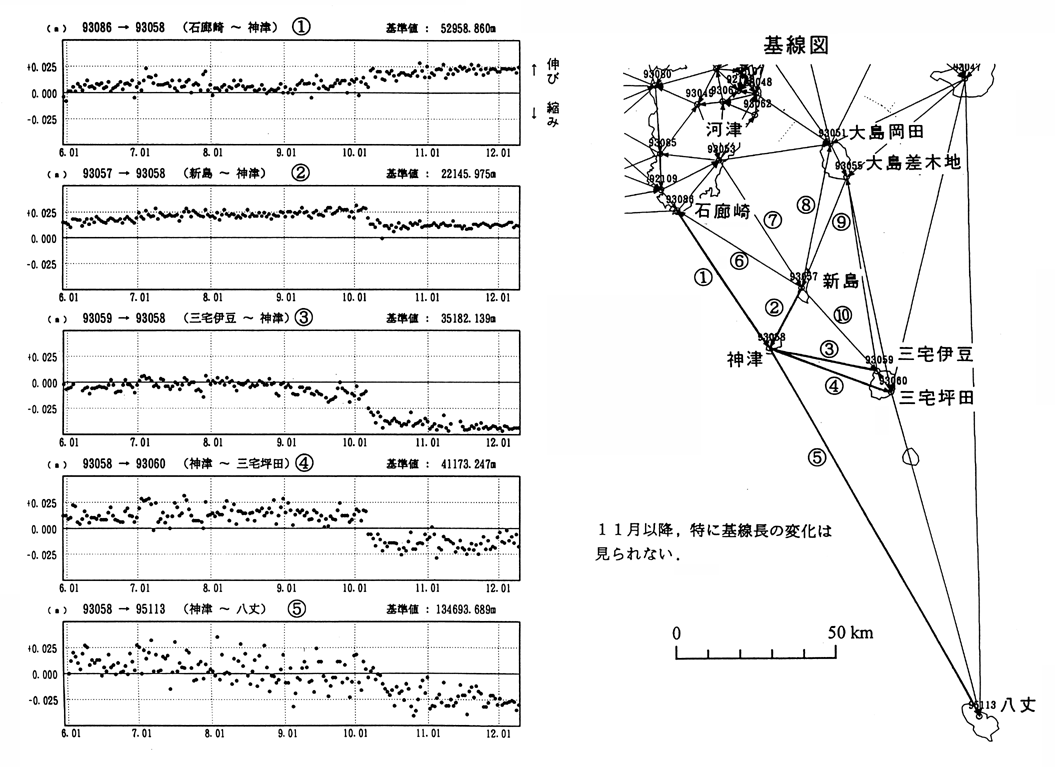 GPS連続観測・基線長変化(神津島・新島周辺)