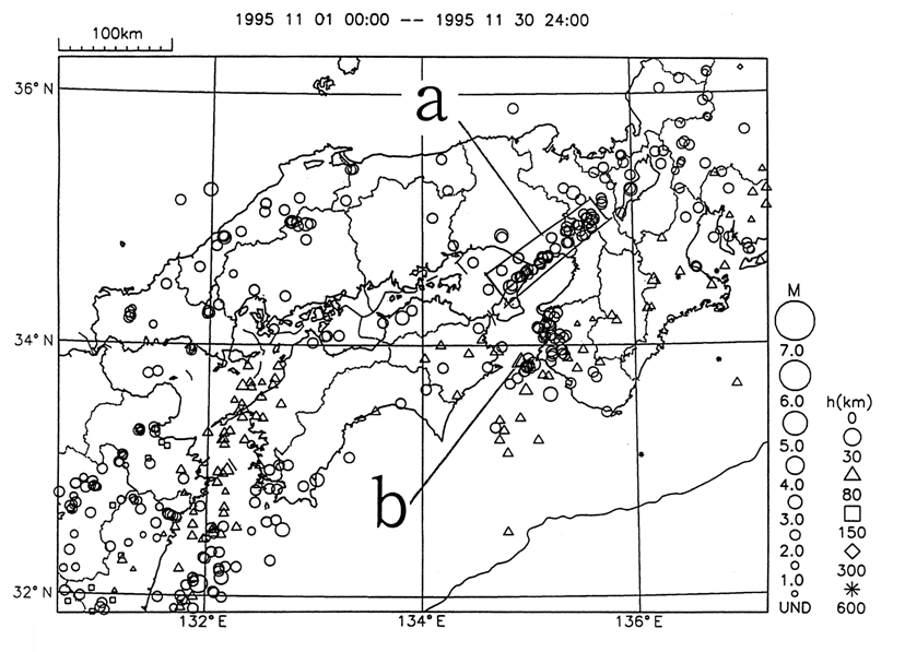a)兵庫県南部地震の余震は依然続いているが、特に変化は見られない。