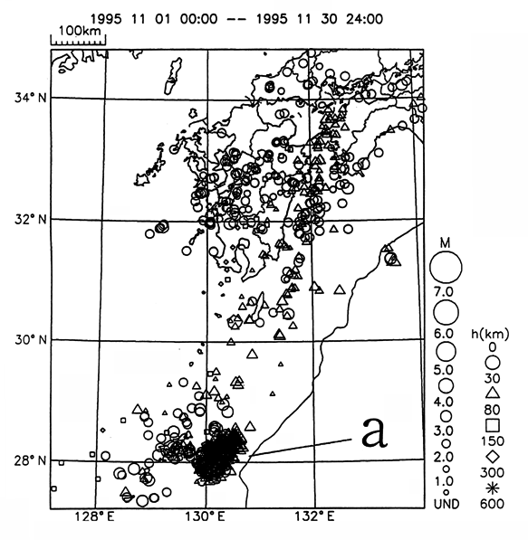 a)奄美大島近海では、奄美大島近海の地震(10/16,17 M6.7,6.6)の余震活動は低下しつつある。
