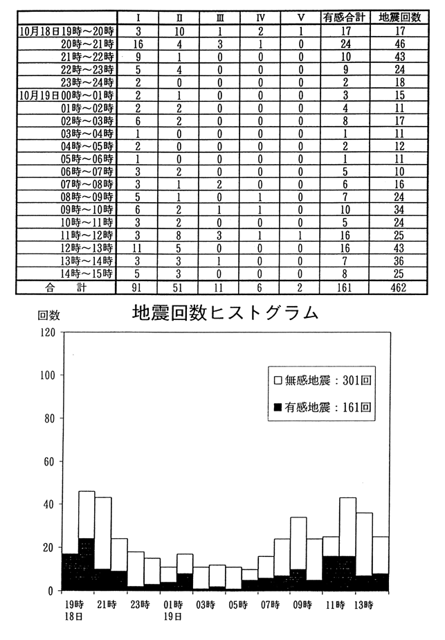 奄美大島近海の地震の最大震度別地震回数・地震回数ヒストグラム