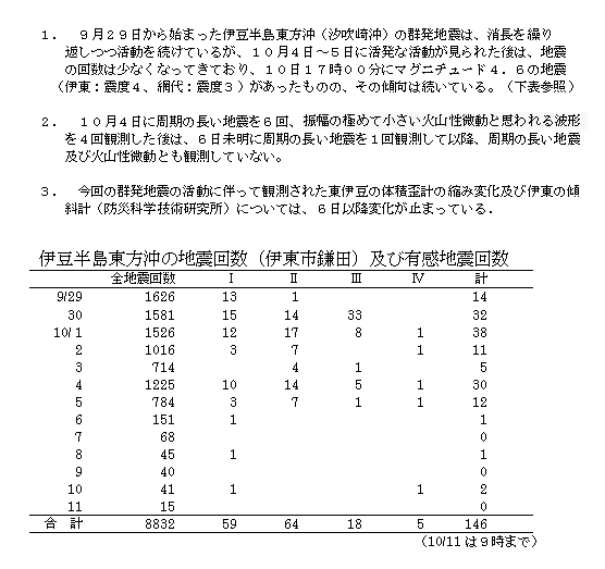 伊豆半島東方沖の群発地震活動について