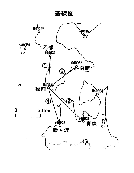 GPS連続観測(松前周辺)基線図