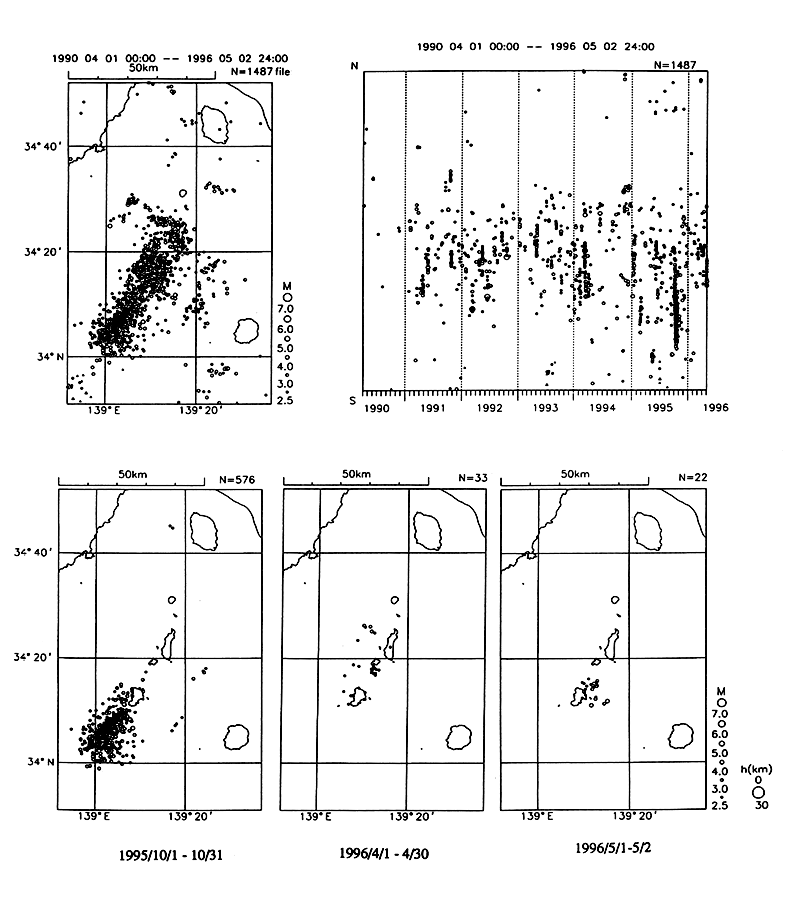 4月の活動域は神津島をはさんで1995/10の活動域の北東側にあたる。また5月に入ってM4.2を含む活動があった。