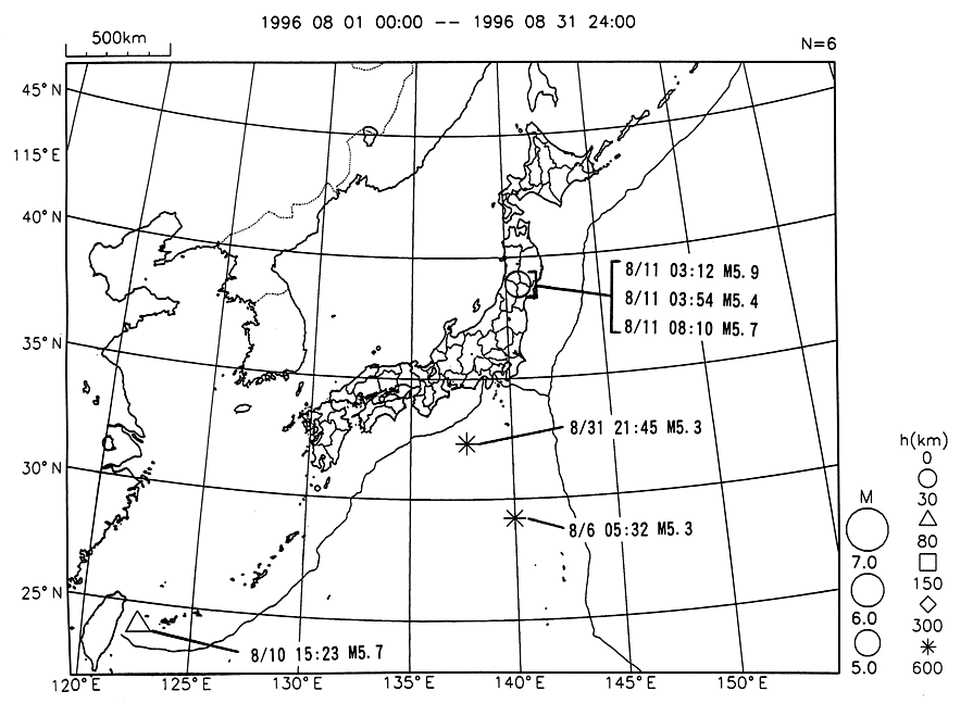 1996年8月の地震活動について